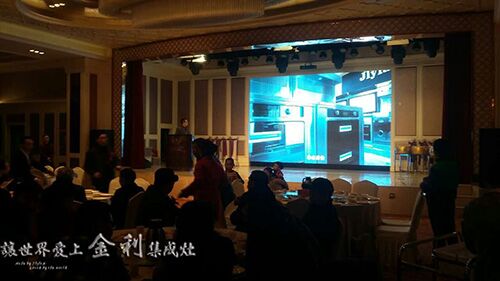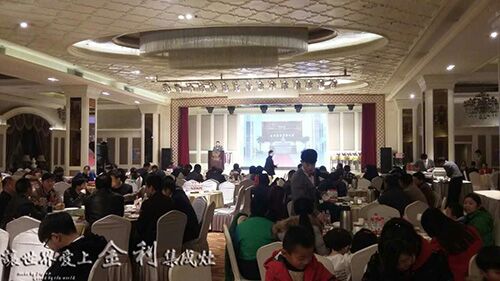 金利集成灶市场部人员给现场的会员分享金利集成灶的产品和企业文化