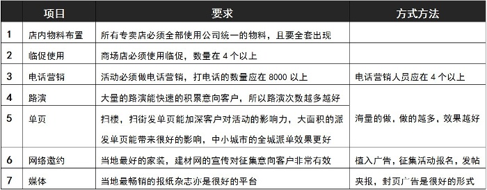 大量使用临促永远是组建团队最快捷,最廉价的方式。活动中的很多环节会使用到临促:比如发单页,做路演,做电话营销,做商场拦截,店内接待等等。使用海量的临促能组建强大的团队,能使专卖店在一次活动中发挥出强大的能量。