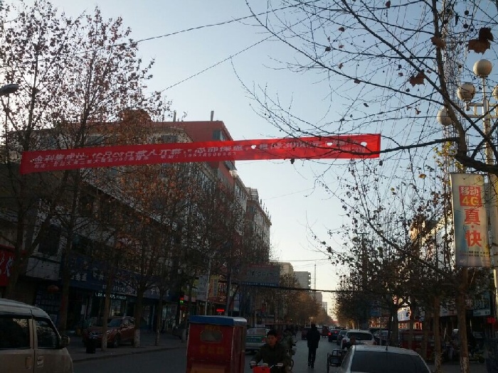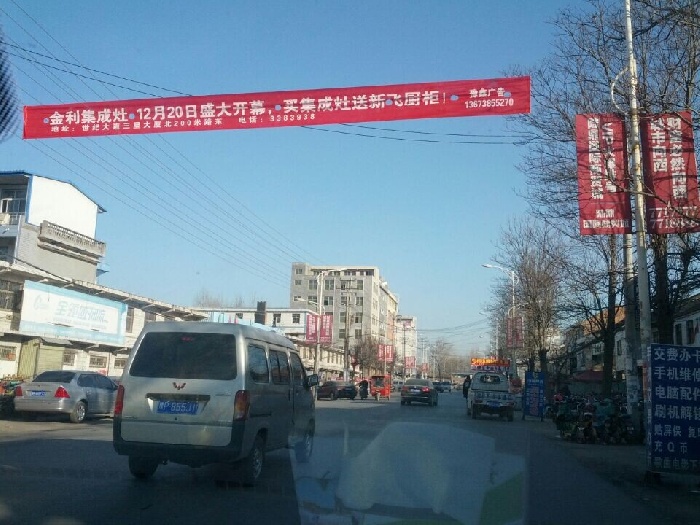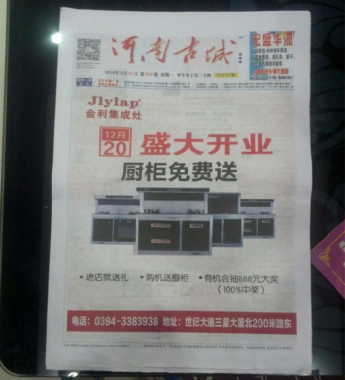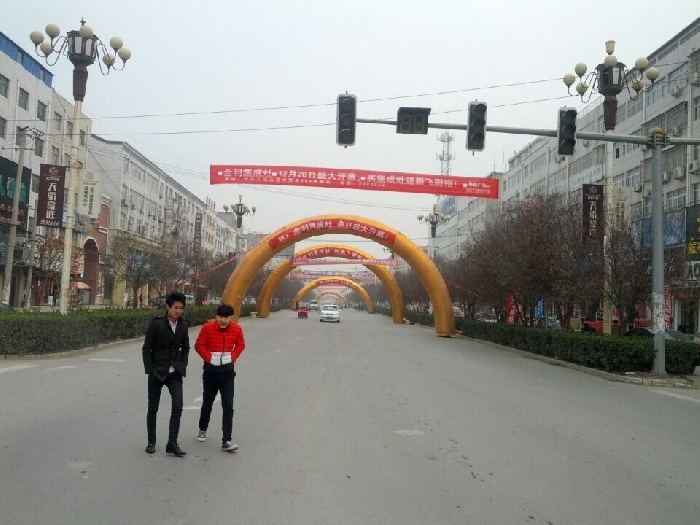 开业前期,李总做了大量的准备工作,以轰炸式的方式迅速传播, 覆盖郸城的大街小巷。从郸城最大众的报纸开始铺路—河南古城报,在首页封面做了整版广告。在县城的主要干道都拉上了醒目条幅、大气的拱门。