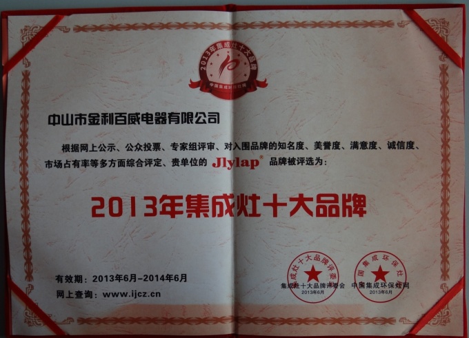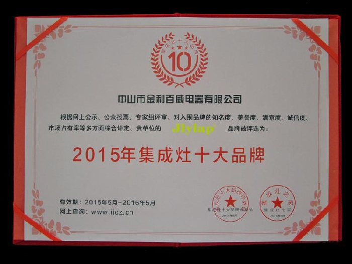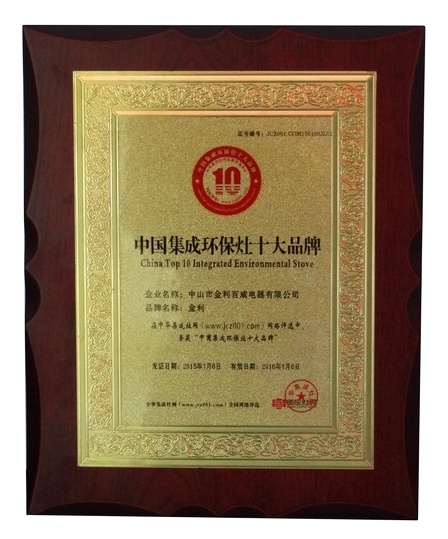 金利集成灶口碑好,质量高,已连续三年被评为集成灶十大品牌!