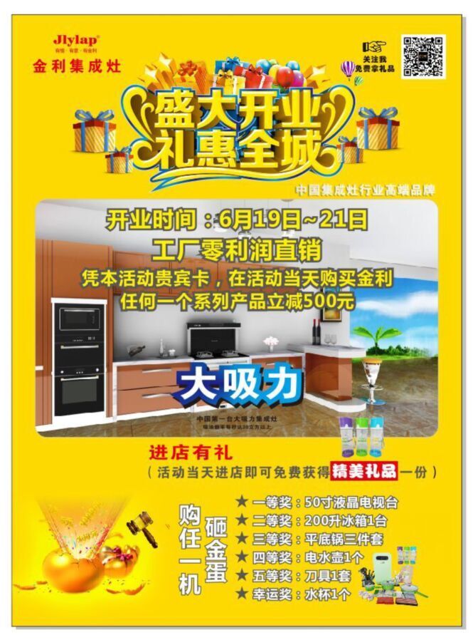 热烈祝贺广东省惠州金利集成灶旗舰店双店(惠州是万饰城4S总店和惠州市光辉家居CBD建材馆4S店)隆重开业!开业活动优惠大酬宾,在炎炎的夏日给力丝丝畅快淋漓的清爽!给力活动爽一夏!赶紧集结到惠州市万饰城或者光辉家居CBD建材馆抢GO!