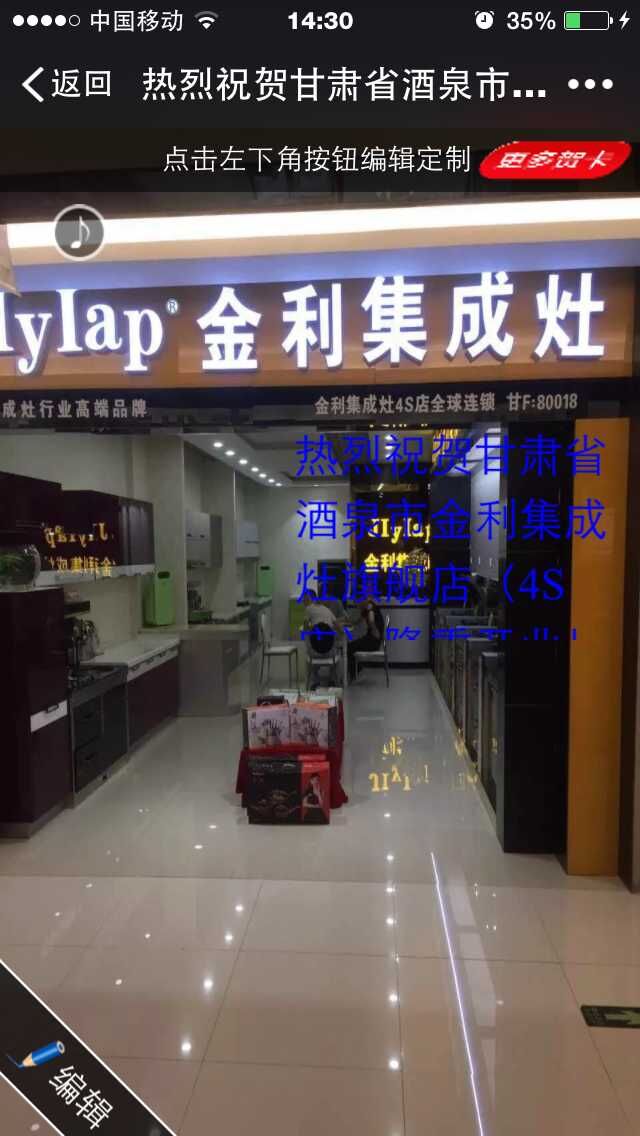 热烈祝贺甘肃省酒泉市金利集成灶旗舰店(4S店)隆重开业!开业活动优惠大酬宾,在炎炎的夏日给力丝丝畅快淋漓的清爽!给力活动爽一夏!赶紧集结观光抢GO!