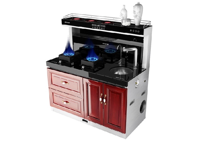 3、金利集成灶材用保灶采用侧吸下排式设计,省去传统挂式吸油烟机的空间,让厨柜,吸油烟机,灶具,消毒柜融于集成灶完美的融为一体,安装高度自由,为高端式的现代厨房节省更多空间。金利集成灶的每个产品都是非常具有设计感,单从外观上来看,有的是低调奢华的黑色,有的是大气简约的银色,有的是高贵优雅的酒红色……有的抽风机处设计成方方正正的经典版,有的设计成带有弧度的前卫版。