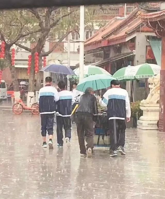 全然不顾自己被雨水打湿。