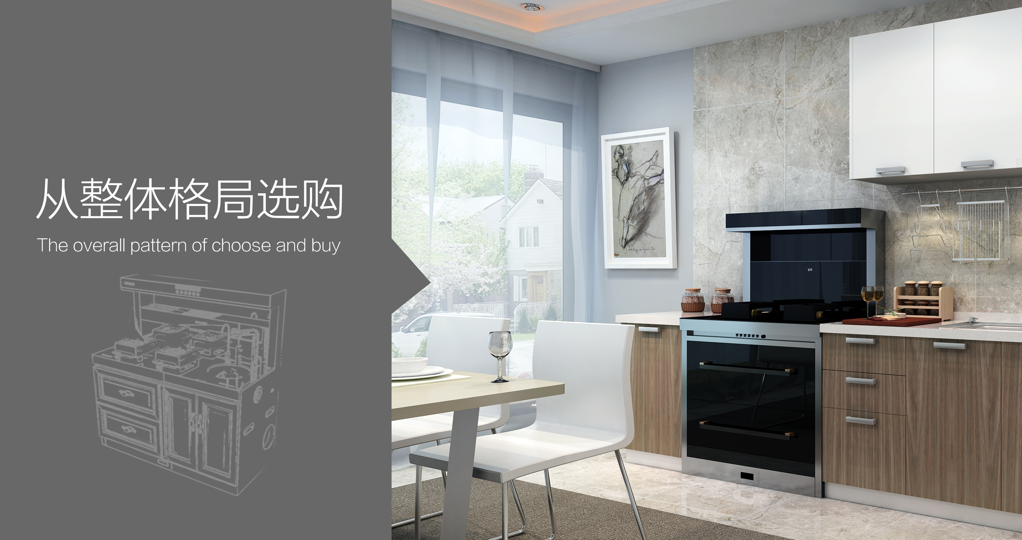 金利蒸烤一体集成灶,让你告别油腻, 吃出健康。60L超大容量,食品级不锈钢蒸盘设计,任你发挥“蒸”的创意。