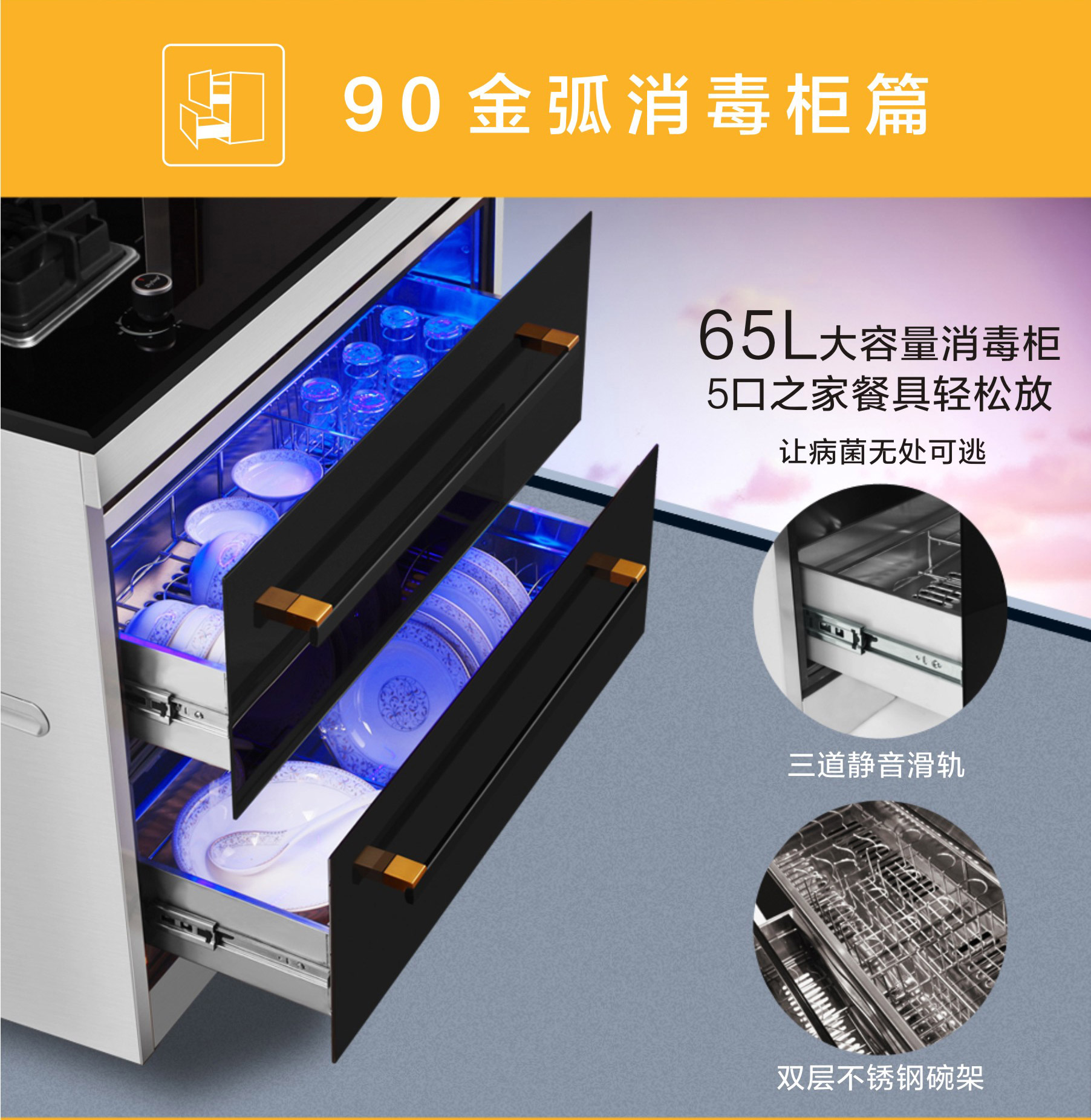 蒸烤一体90款集成灶,集了吸油烟机+燃气灶+蒸烤一体箱为一体,4.2KW大火力精控,充分燃烧,受热均匀,猛火爆炒锁留材料的新鲜及营养,大火滑炒令菜肴滑嫩柔软色泽鲜艳,中火煎炒收汁时可使食物入味,小火炖煮让食材软烂可口,微火焖煨使食物有入口即化的口感。并且还配置了八种烹饪模式,70L,4层超大不锈钢内胆及面板,内胆与外框板面无痕拼接,整体无螺钉,内部密封更强,擦洗更加方便。蒸烤一体采用独立的蒸汽装置,使箱内空间更加简洁,独立1L可视加水杯,可供蒸箱工作100分钟,使用起来更加方便。