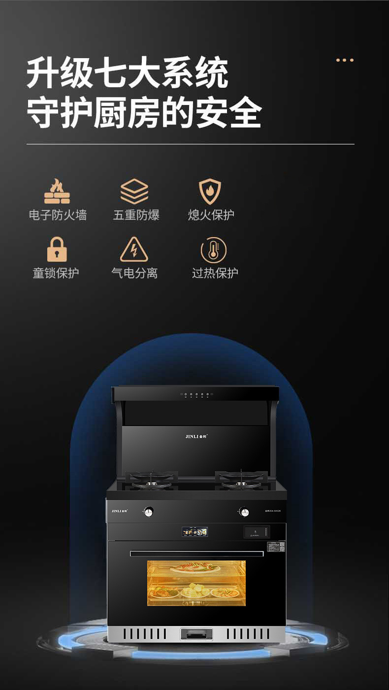 金利集成灶更有6重安全保护系统,全方位呵护您的健康与安全。