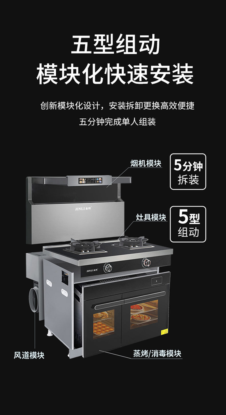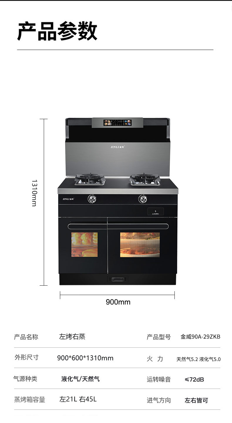产品名称:金利(JINLI)金威90A-29ZKB 蒸烤 声控启动 蓝牙链接 纳米灶面板 电热清洗 金利集成灶 烟灶消一体